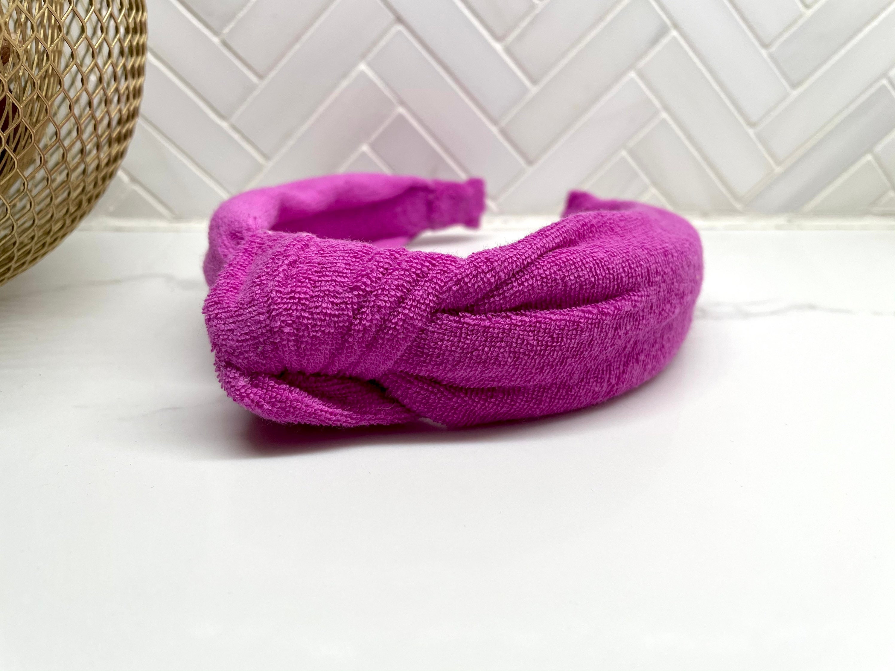 These terry cloth towel top knot headbands are soft, comfortable and fit most sizes from girls to women.