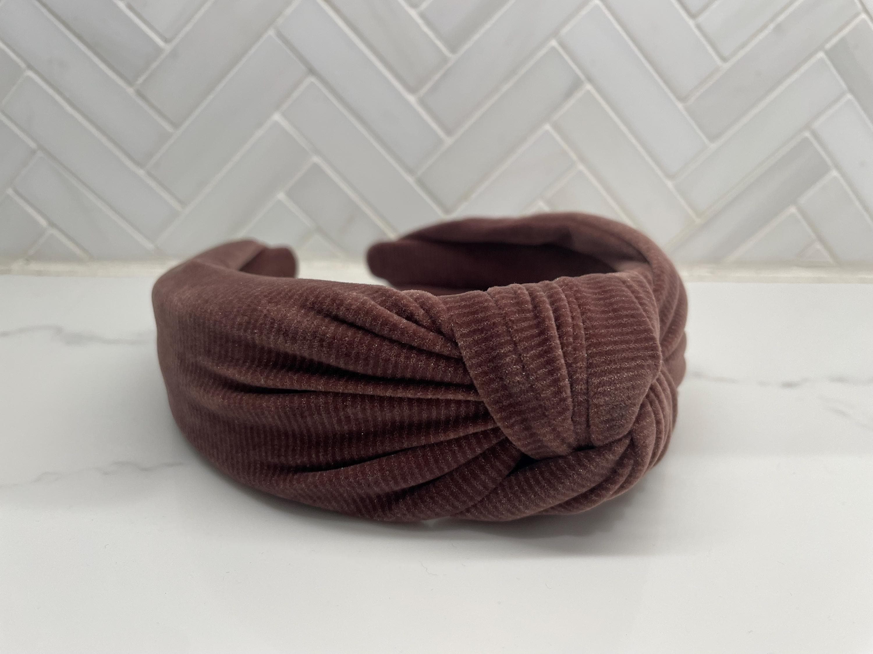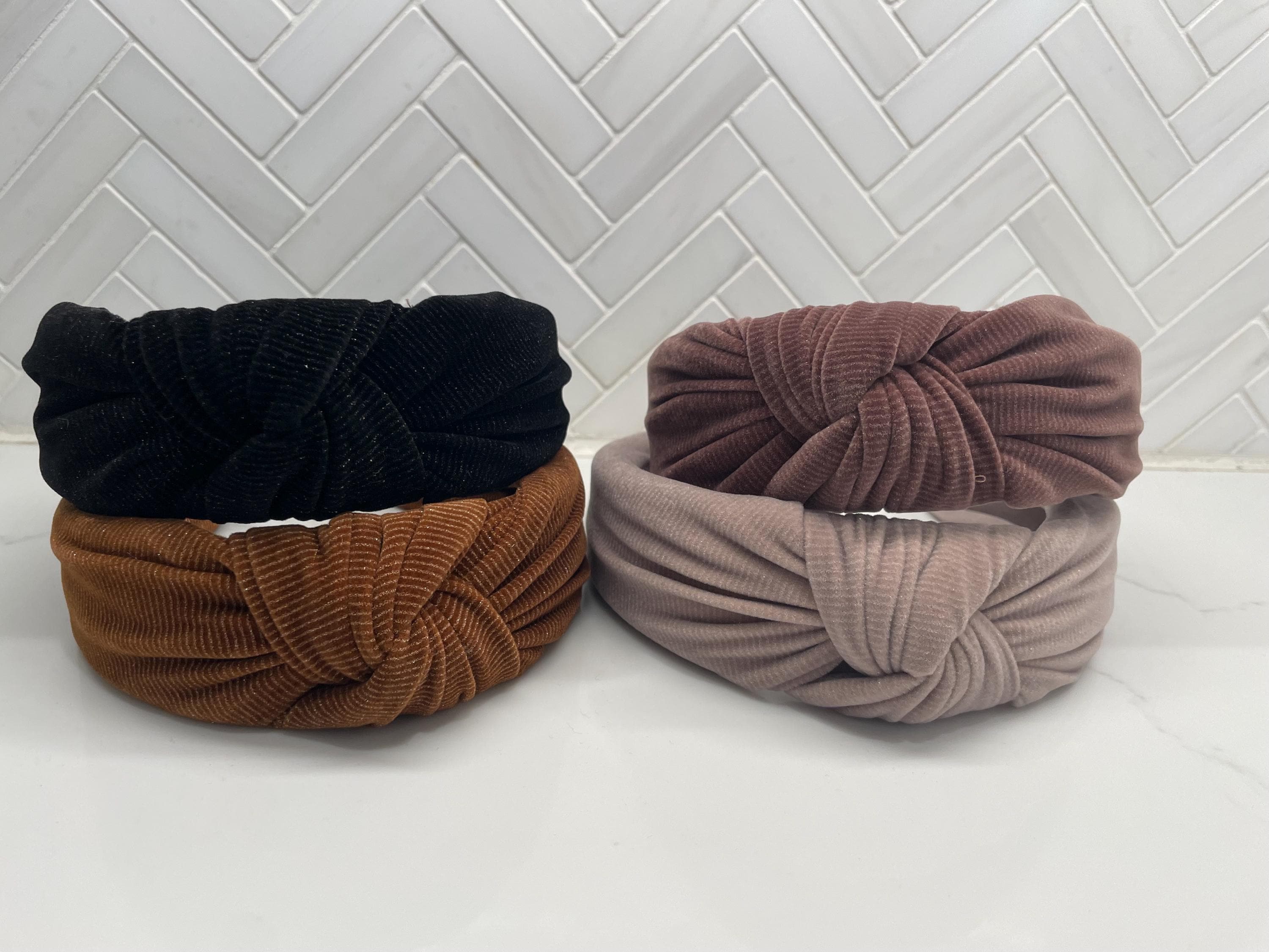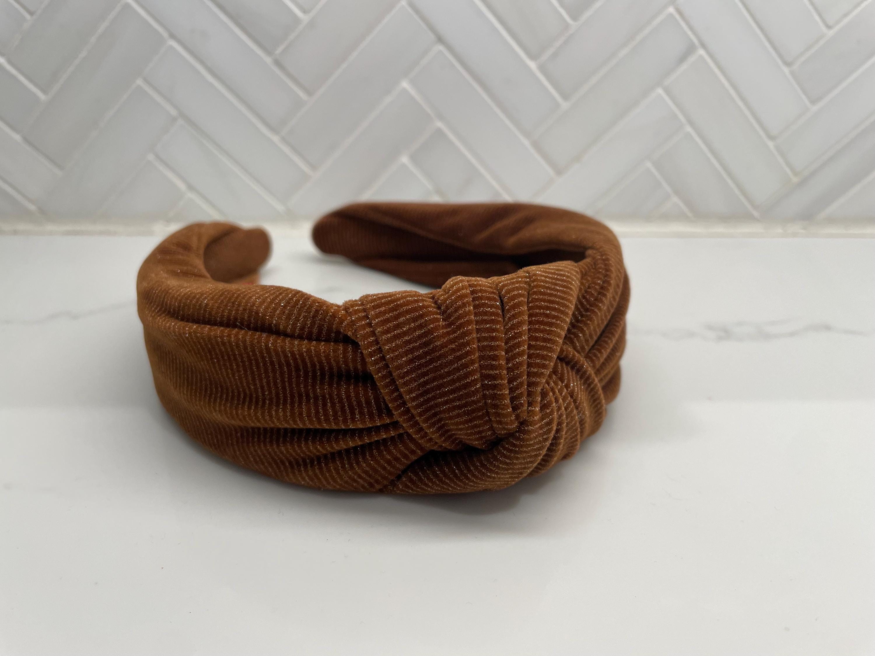 These top knot headbands are wrapped in corduroy fabric. Perfect for any occasion, and fits most sizes from girls to women.
