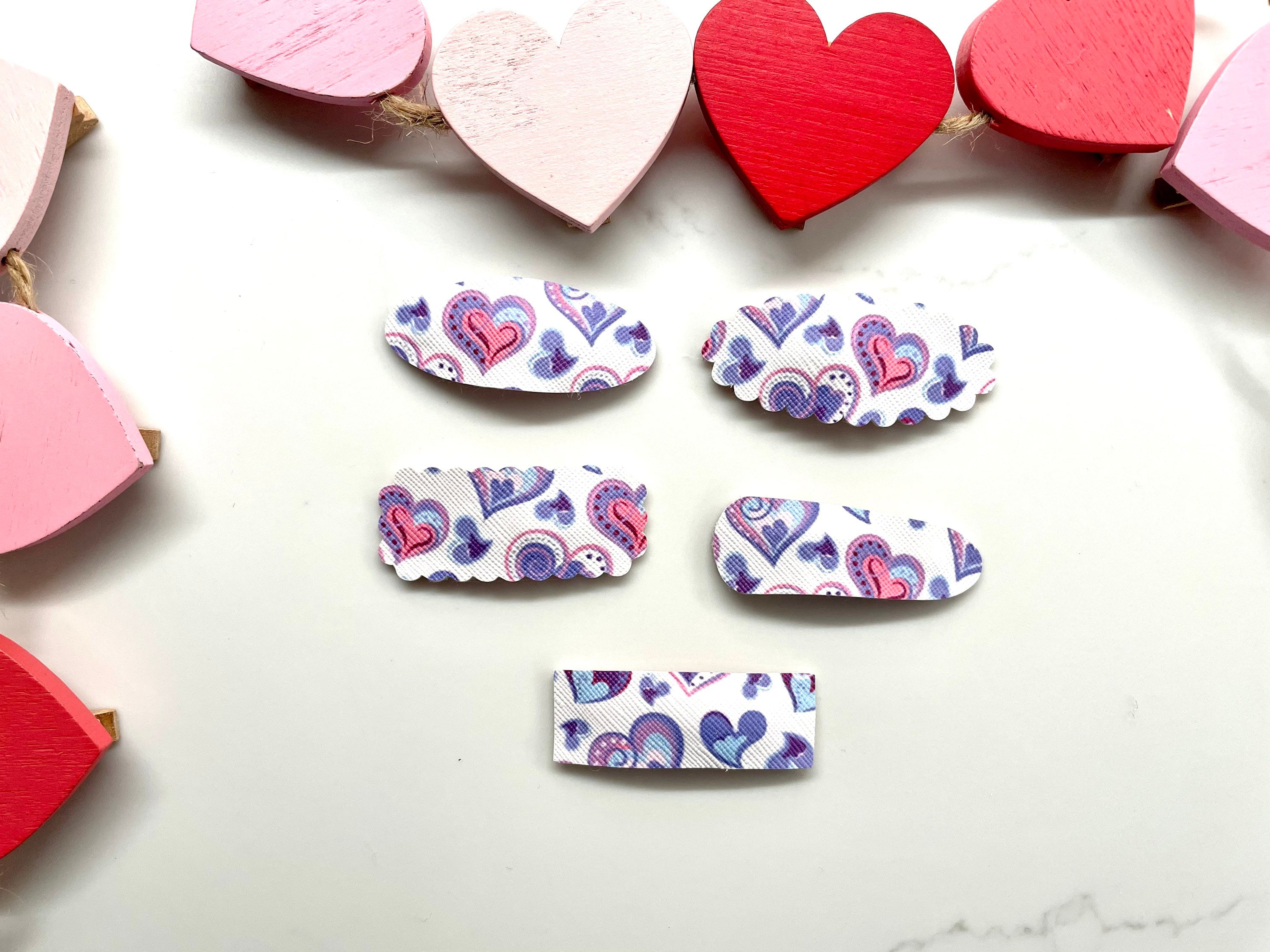 Each clip is handmade and patterns may vary from the example photos in each listing. The snap clips measure approximately 2.25 inches long.